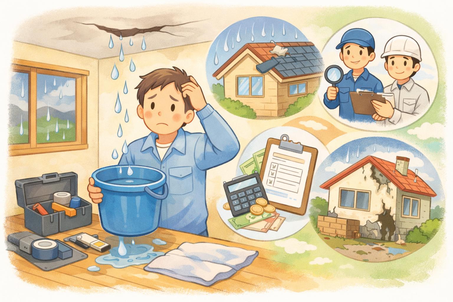 まずは落ち着いて!自分でできる雨漏りの応急処置